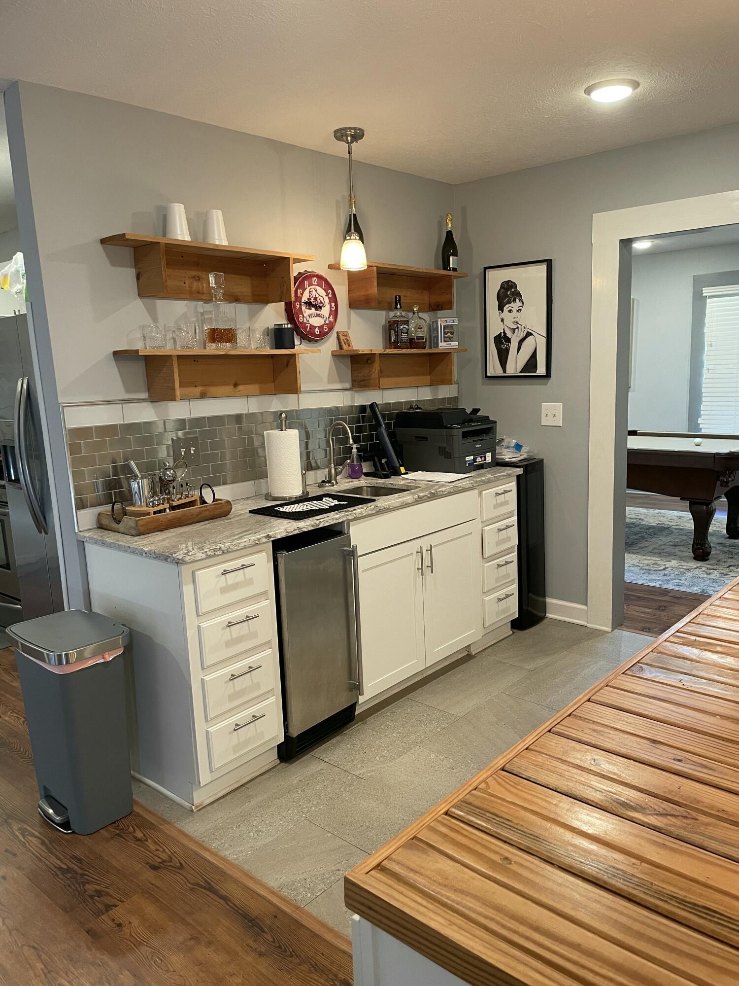 Renovated elegance without loss of character exists in this beautiful 3/3 home in Starkville's best kept secret, Woodland Heights. 1.5 miles from campus and downtown, this home is located in a friendly, quiet, established neighborhood. The open floor plan offers great space for entertaining or relaxing with family. Kitchen features include tons of counter and cabinet space/storage, gas cooktop range, wet bar/food prep station, stainless & granite, and an island with eat-in sandwich bar featuring cedar beams. The family room offers ample space, a gas log fireplace, and lovely views of the back deck through french doors. Formal dining room off the kitchen offers flex space for playroom, game room, or casual dining; the choice is yours! Primary bathroom provides a large walk in shower with