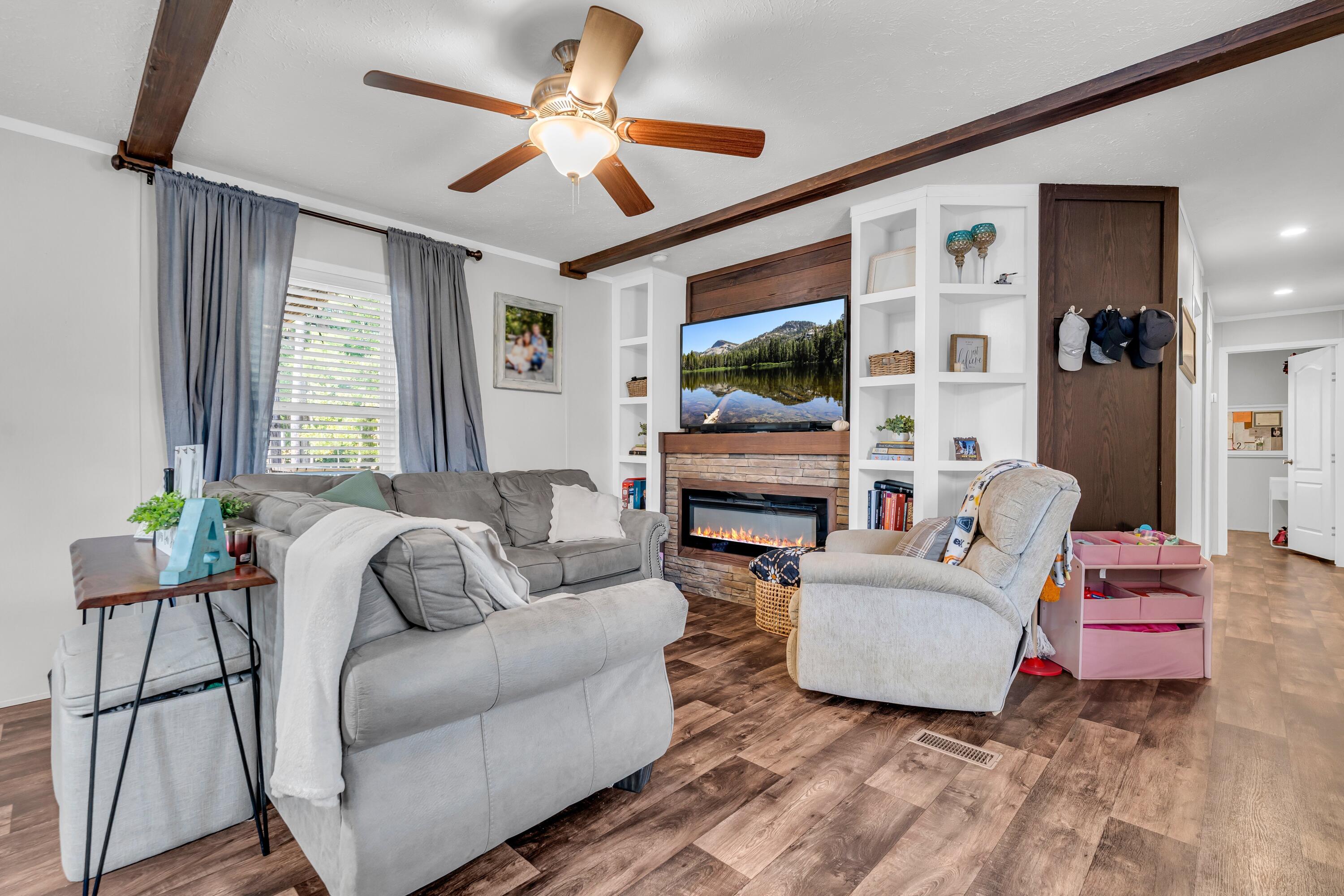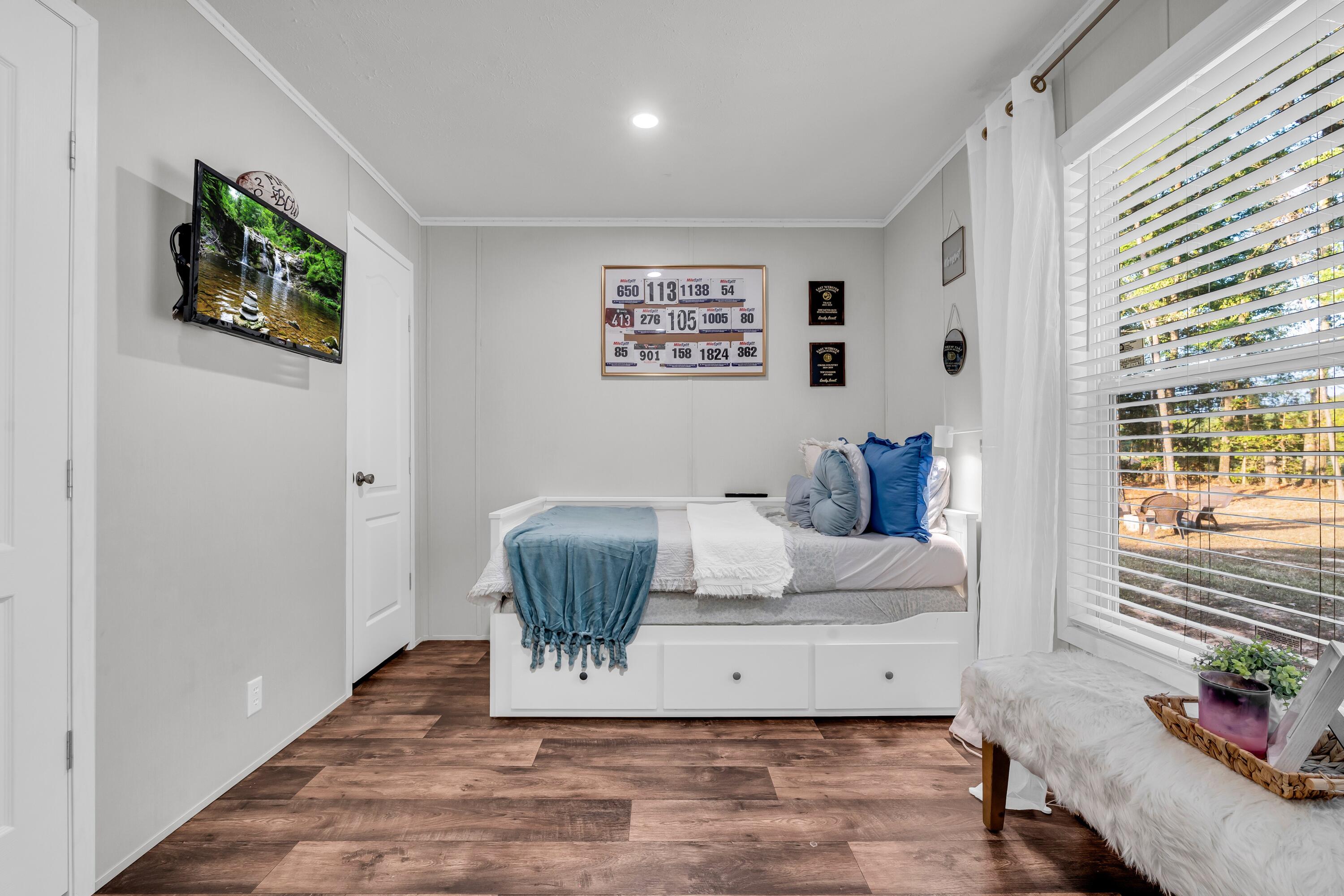 Welcome to this modern 2022 manufactured home, beautifully sited on 5.28 acres in the highly desirable East Webster School District. This thoughtfully designed 3-bedroom, 2-bath residence spans 1,216 sq ft and features an open, functional floorplan that maximizes space & light. The interior boasts contemporary finishes, neutral tones & quality flooring throughout.The primary suite includes a private bath with dual vanities & an upscale feel. The second full bath is equally well-appointed & easily accessible to secondary bedrooms & guests.Outside, the property offers abundant opportunity. Along with the peaceful country setting, there is a storage shed, playhouse. The acreage provides ample privacy, room for outdoor activities, and potential expansion.