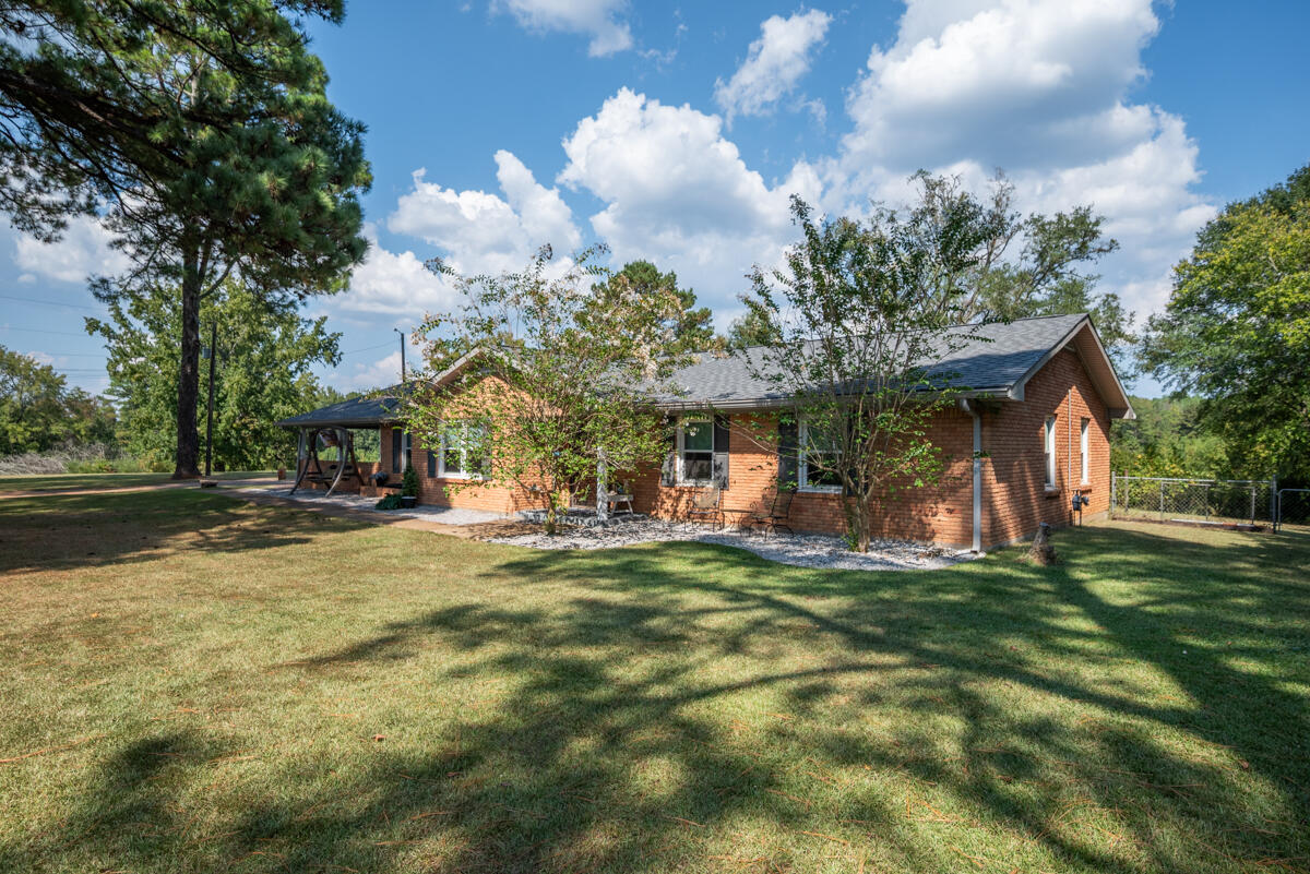 Step into this lovely 4-bedroom, 2-bathroom brick home on a sprawling 25-acre property. The inviting open-concept kitchen has been recently renovated. Cozy up by the stunning stone fireplace in the living room featuring charming arched doorways that add a touch of classic elegance. Fenced backyard allows for peace of mind and convenience for pets. The peaceful outdoor setting includes a covered back porch, and the surrounding landscaping is designed for low maintenance, so you can spend less time on yard work and more time enjoying your private acreage. A separate mother-in-law apartment offers a private space for guests or use as ample storage - however this part of the home is included as-is.