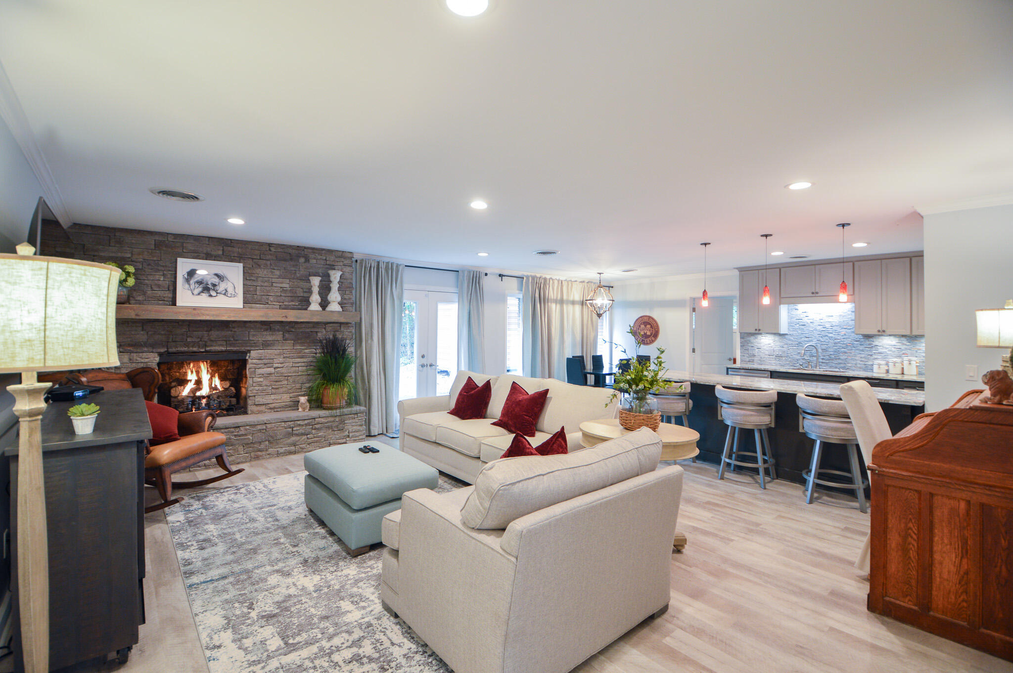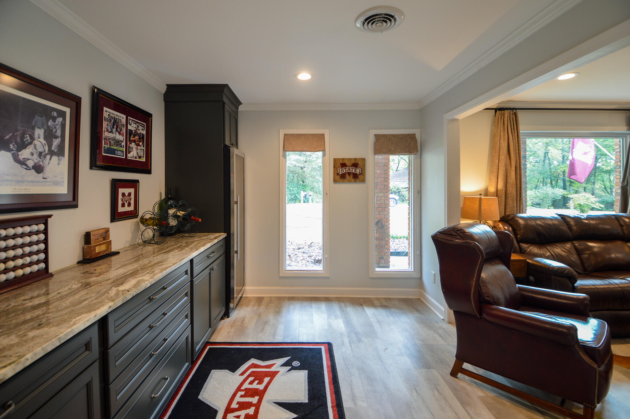 Charming Renovated Home Steps from Campus - Hear the Bells from the Chapel of Memories!Experience the perfect blend of style, comfort, and convenience in this beautifully updated home within walking distance to campus. Fully remodeled in 2019 with interior design by Cindy of Something Southern, this residence showcases thoughtful craftsmanship and premium finishes throughout.The open-concept kitchen and living area are ideal for entertaining, featuring custom kitchen, bar, and bath cabinetry with soft-close drawers, a Fisher & Paykel gas cooktop, 177-bottle Allavino wine refrigerator, and a cozy gas fireplace. A man cave with a full bar adds an extra touch of fun and functionality.