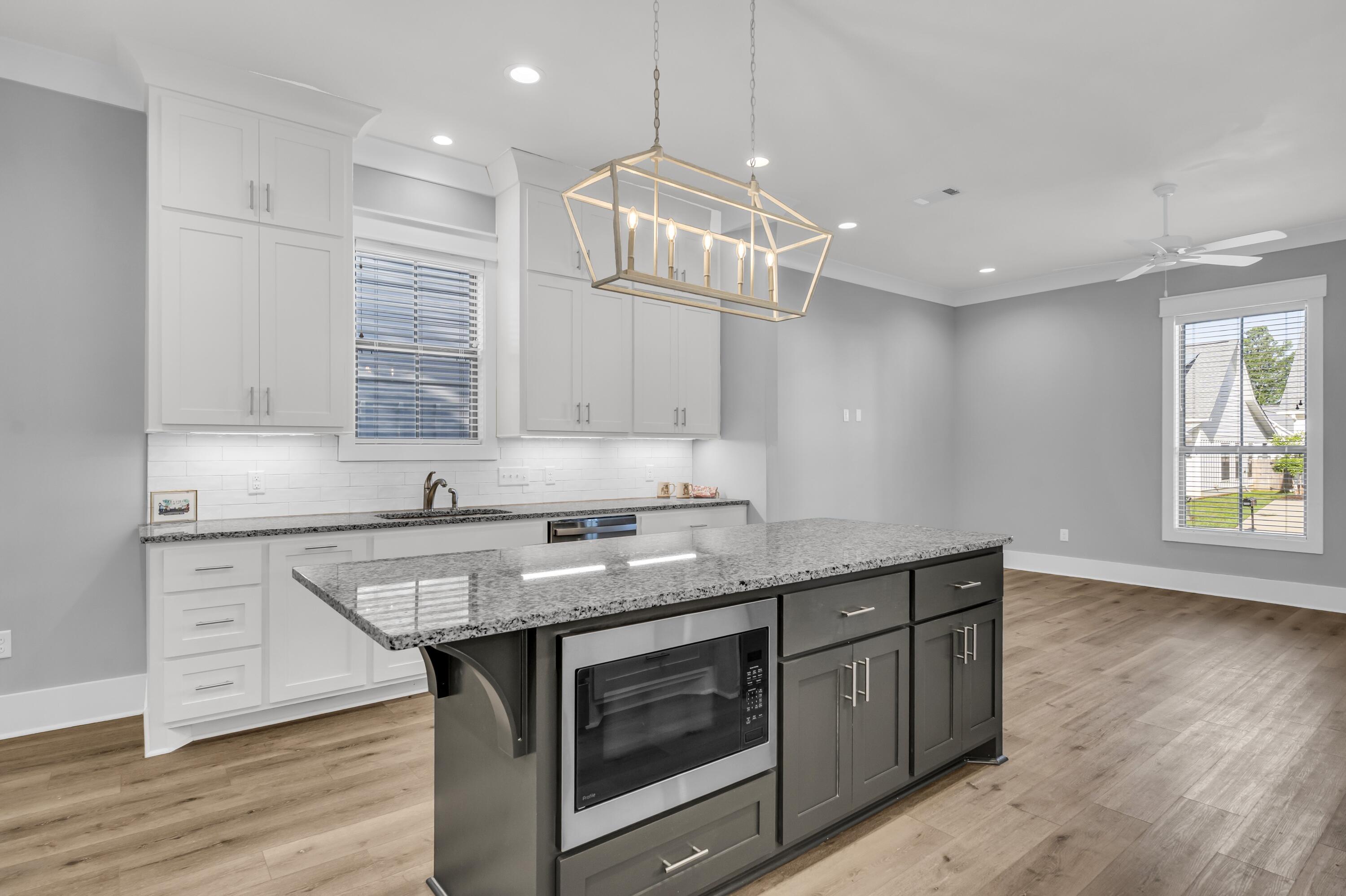 Just 2 miles from Davis Wade Stadium, this nearly new 3BR/3BA home blends modern comfort with a prime Starkville location. Built in 2023, it features an open layout with soaring ceilings, rich LVP floors, and a gorgeous kitchen with granite counters, stainless appliances, tile backsplash, and an island with built-in microwave. The living area flows to a covered patio with fan and TV mount, perfect for game days or quiet evenings. The fenced backyard is a compact blank canvas--easy to maintain yet full of potential for your own cozy retreat. The primary suite offers a tiled walk-in shower with river-rock flooring, generous storage, and the convenience of an included washer/dryer. Stylish, inviting, and close to it all!!
